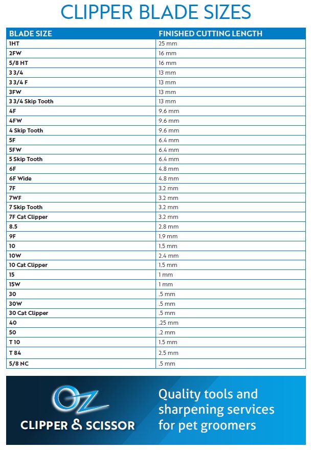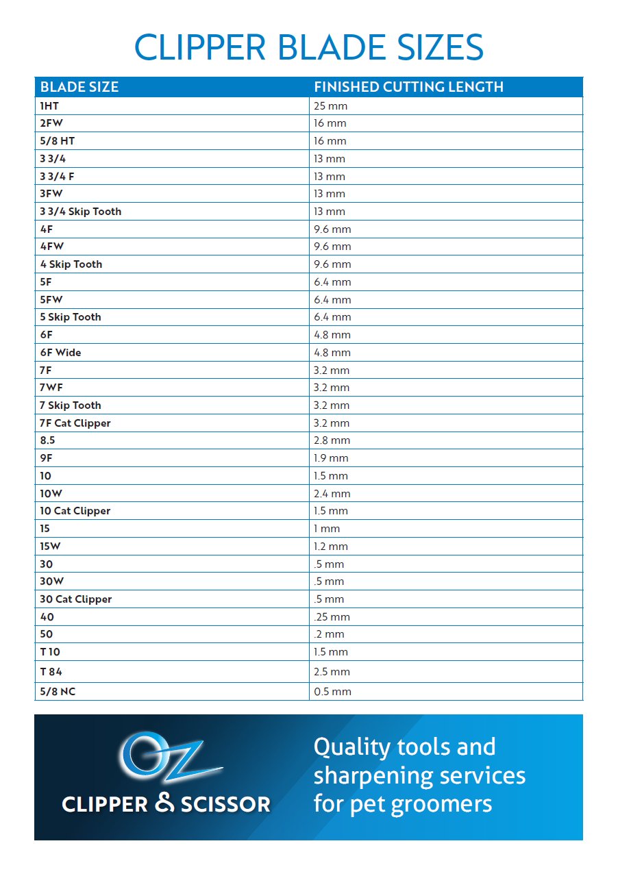 CLIPPER BLADE SIZE CHART